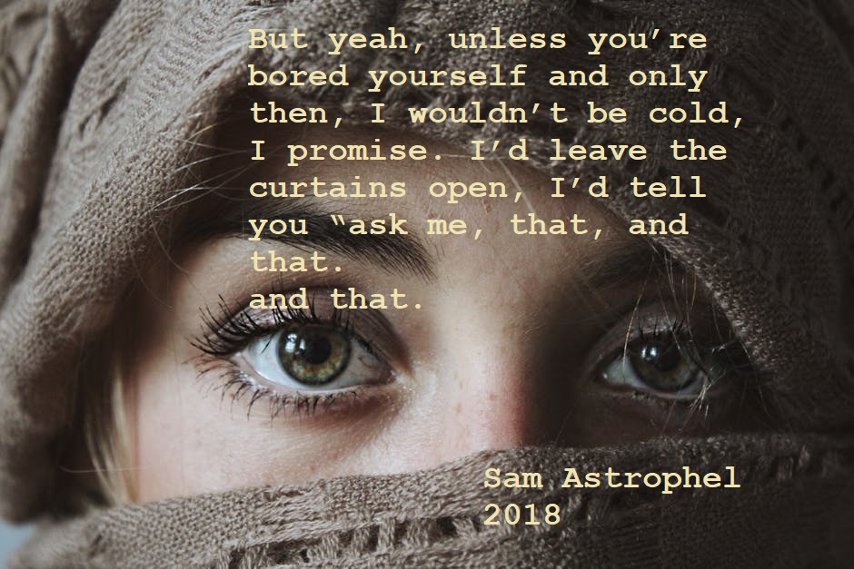 But yeah, unless you’re bored yourself and only then, I wouldn’t be cold, I promise. I’d leave the curtains open, I’d tell you “ask me, that, and that.